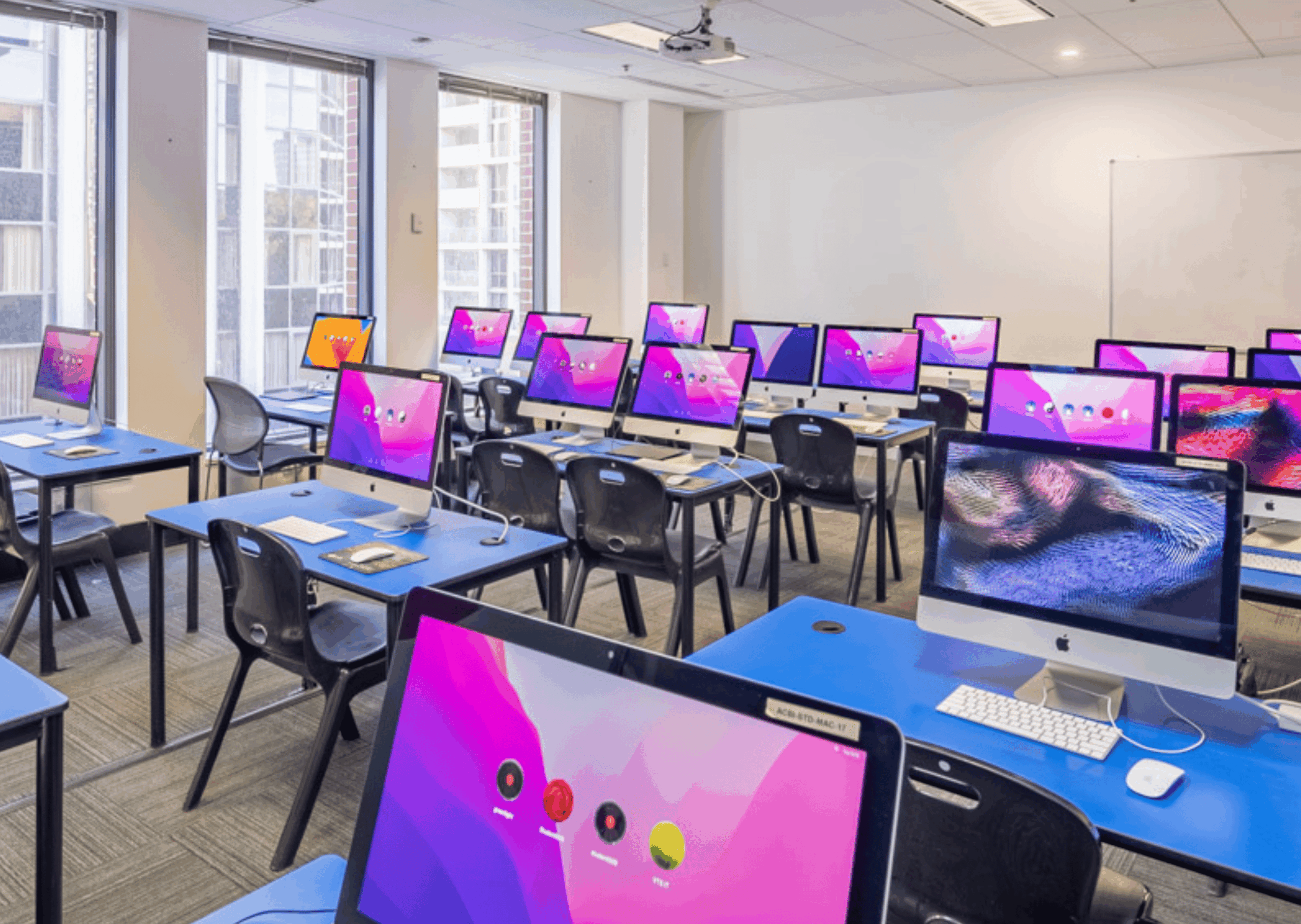 キャンパスはシティの中心地に位置しており、タウンホール駅から徒歩10分程度、ミュージアム駅から徒歩5分という好ロケーションの専門学校です。アクセスは大変便利で通学しやすく、シティ周辺で買い物や食事など、放課後ライフも充実させやすいといった特徴がございます。
