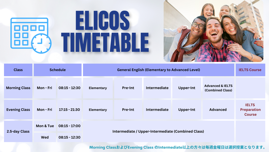 時間割はモーニング、アフタヌーン、イブニングに分かれているため、自信のライフスタイルに合った時間帯で学習することができます。学習の理解を深めるために同日別時間帯の同じ内容の授業に参加することもできます。